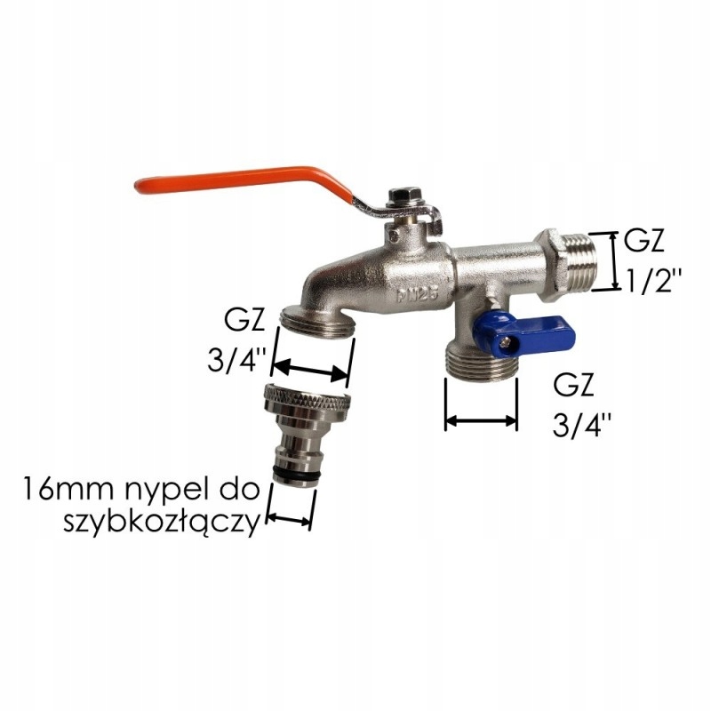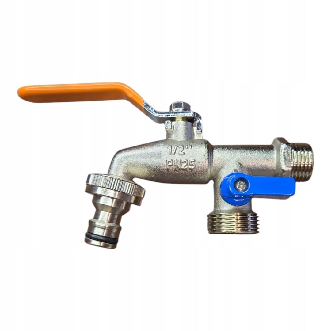 Funkcjonalny kran kulowy wykonany z solidnego mosiądzu pokrytego warstwą ochronną niklu. Idealny do rozgałęzienia instalacji wodnej w ogrodzie lub na działce. Dzięki dwóm niezależnym wyjściom możesz jednocześnie podłączyć węże ogrodowe oraz inne akcesoria nawadniające.