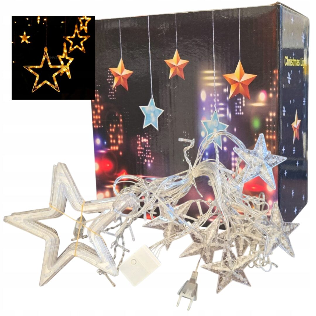 KURTYNA ŚWIETLNA GWIAZDKI 120 LED 4,7m BIAŁY CIEPŁY GIRLANDA lampki Święta