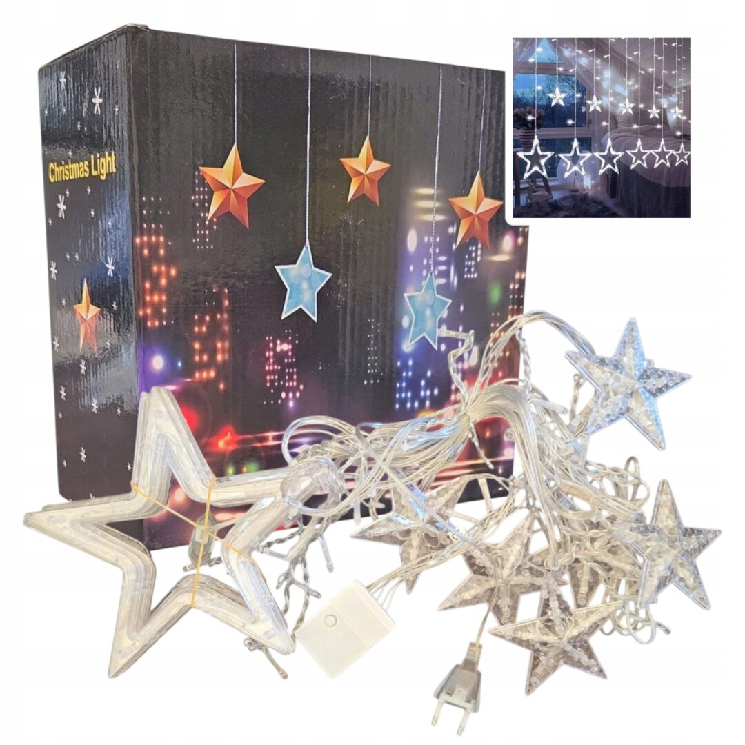 KURTYNA ŚWIETLNA GWIAZDKI 120 LED 4,7m BIAŁY ZIMNY GIRLANDA lampki Święta