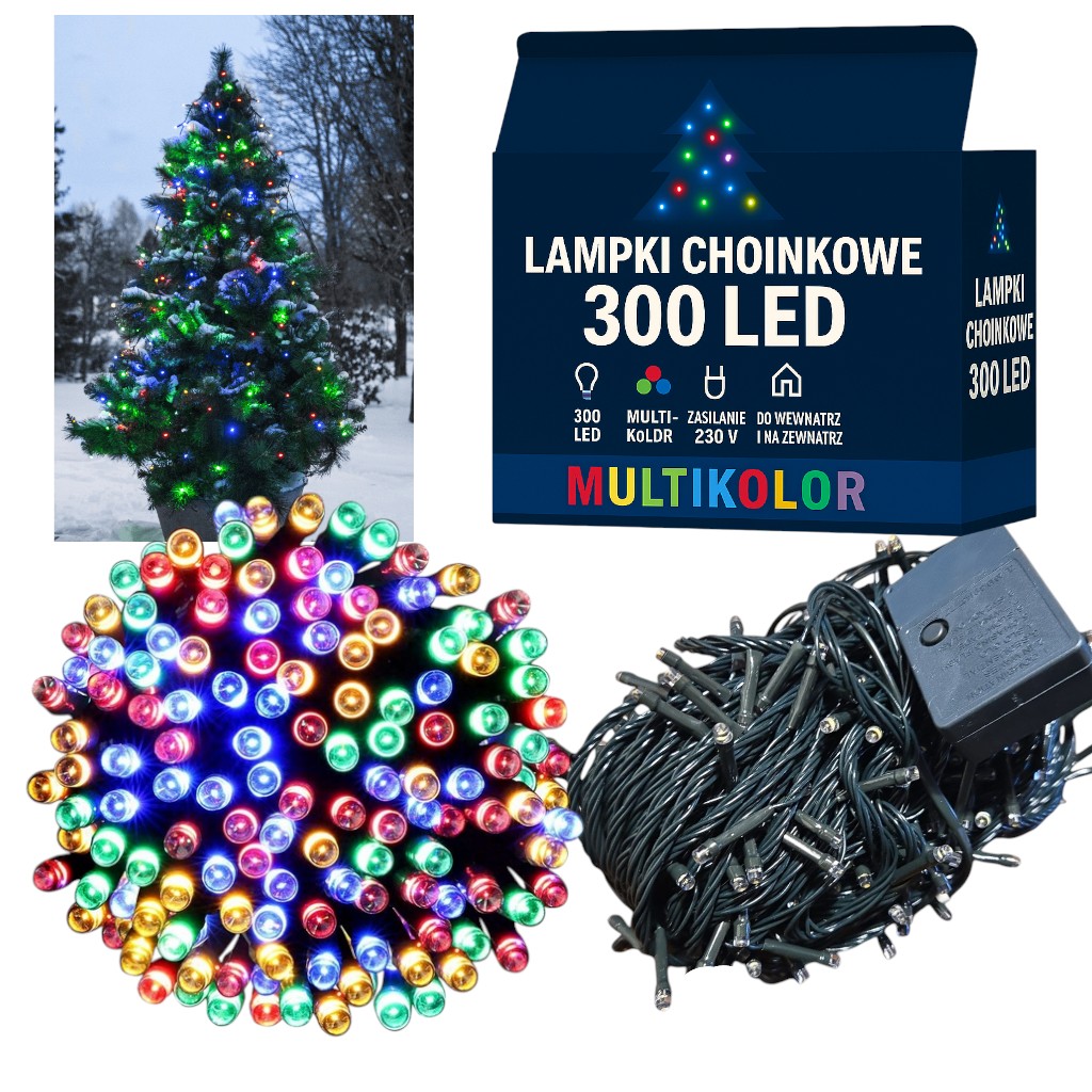 Wprowadź do swojego domu prawdziwą magię świąt! Nasze lampki choinkowe z 300 diodami LED w wersji multikolor stworzą radosny klimat i podkreślą urok Twojej choinki oraz świątecznych dekoracji.
