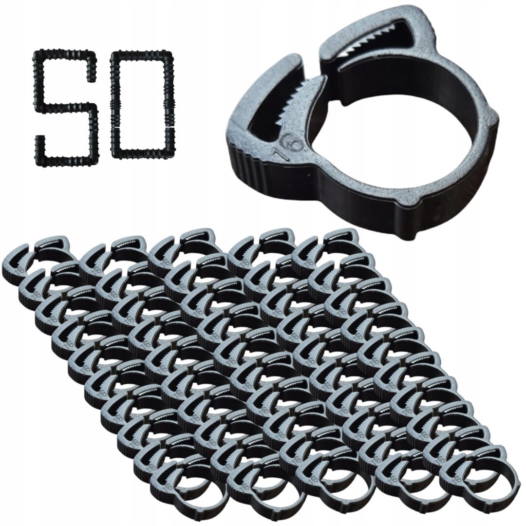 Zestaw 50 wytrzymałych opasek zaciskowych przeznaczonych do szybkiego i pewnego mocowania linii kroplujących oraz rur PE o średnicy 16 mm. Idealne do instalacji nawadniających w ogrodach, szklarniach czy na plantacjach.