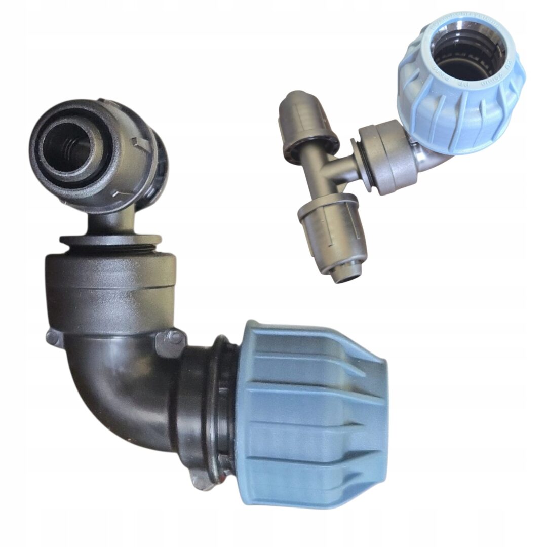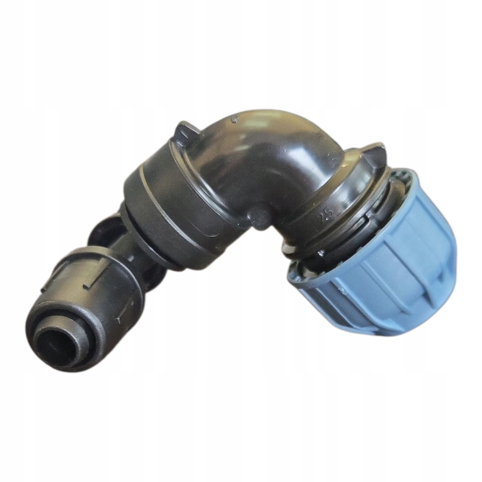 Połączenie skręcane linii kroplującej lub rury PE 16 z rurą PE 25 na kolano