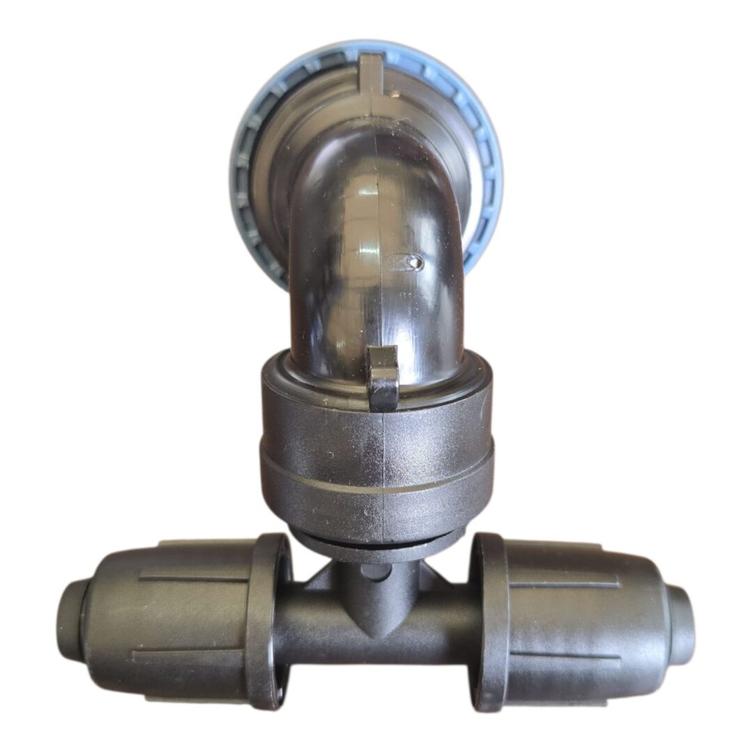 Połączenie skręcane umożliwia szybkie i trwałe połączenie linii kroplującej lub rury PE o średnicy 16 mm z rurą PE 25 mm, tworząc stabilne połączenie pod kątem prostym. To niezawodny element systemów nawadniania, który ułatwia prowadzenie instalacji w miejscach wymagających zmiany kierunku.