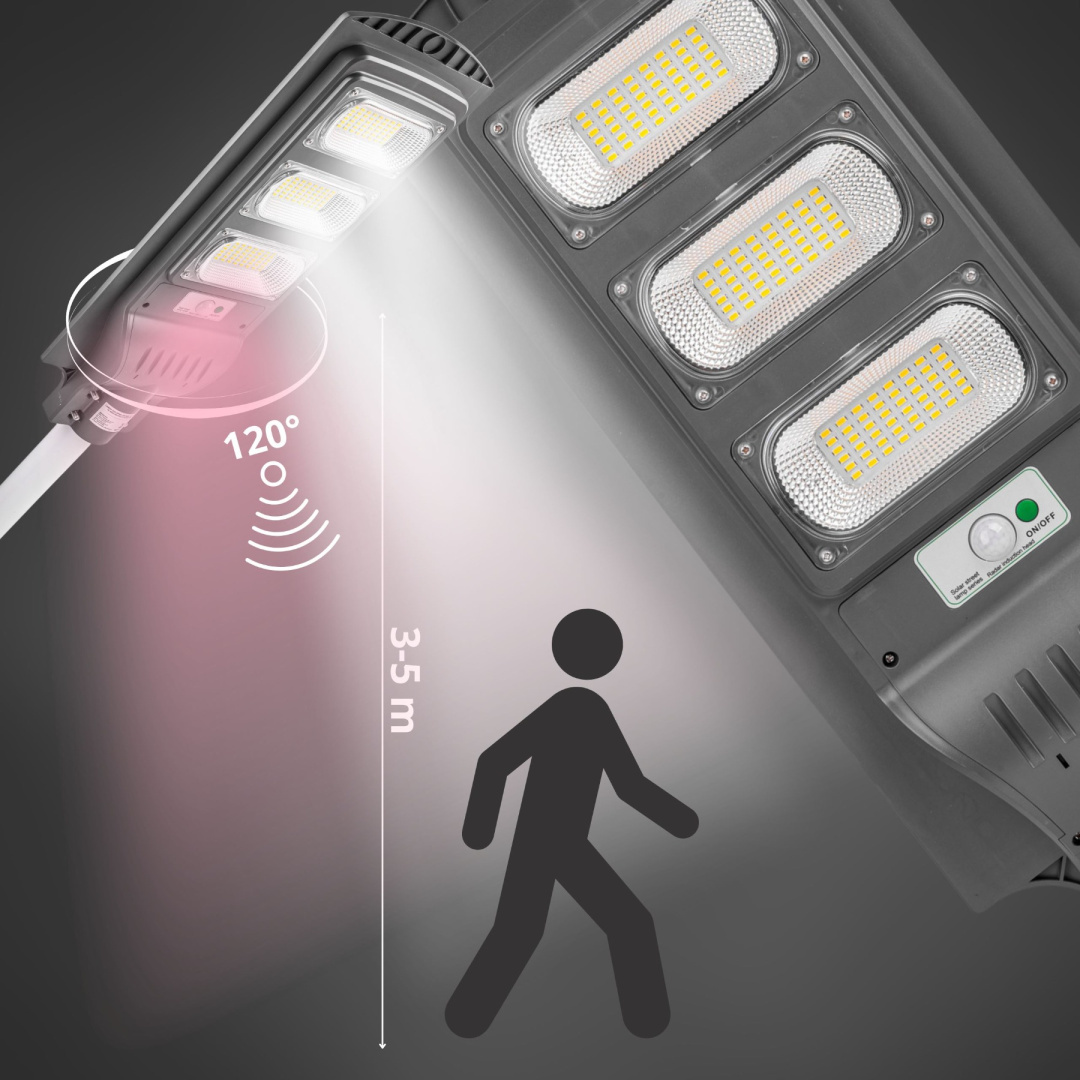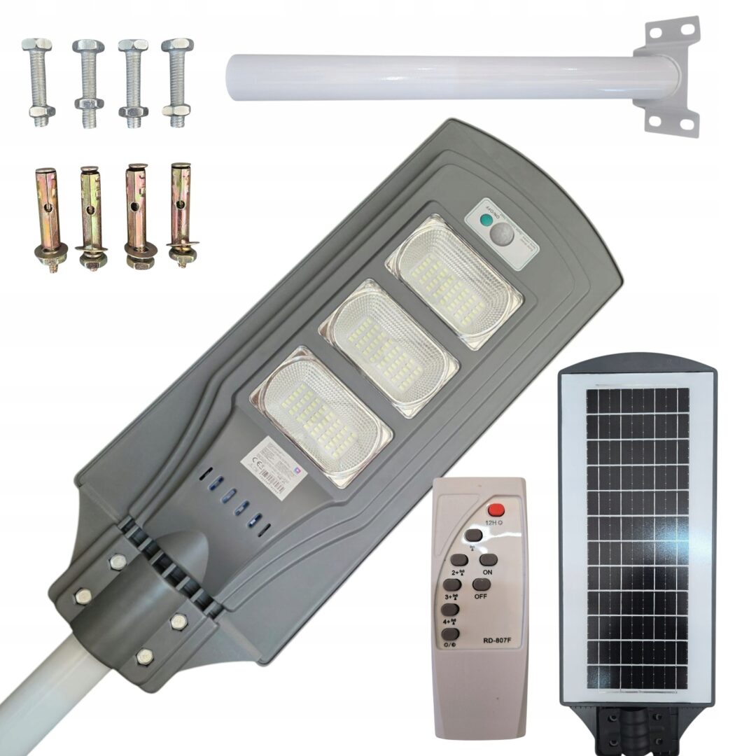 Lampa Uliczna Solarna LED 120W ze Słupkiem, Czujnikiem Ruchu i Pilotem