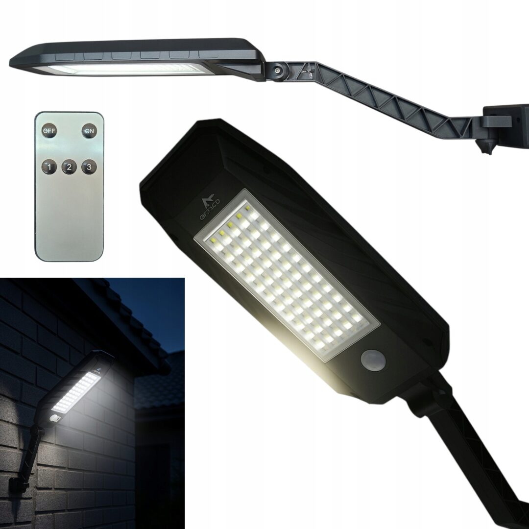 LAMPA ULICZNA solarna LED 600W czujnik ruchu zmierzchu PILOT OGRODOWA