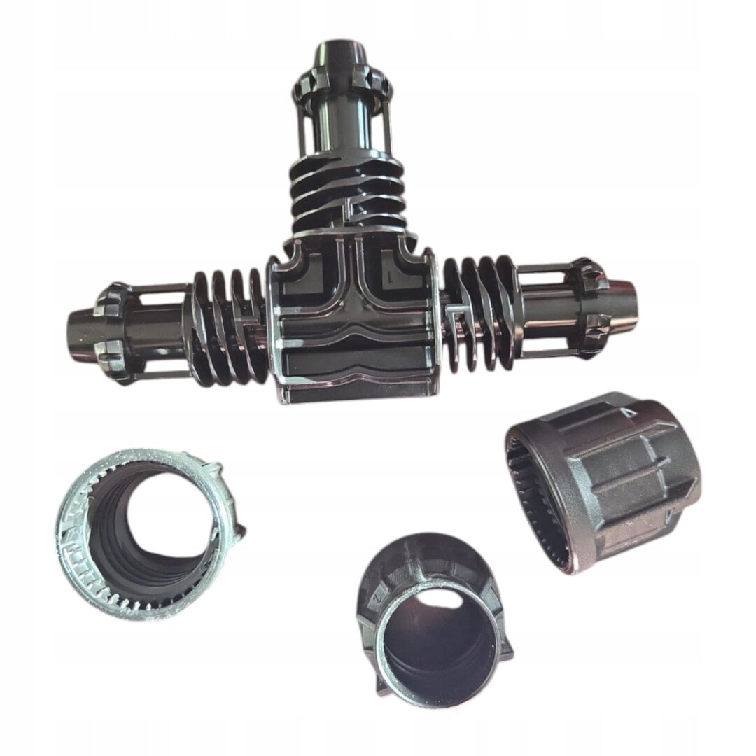 Trójnik szybkozłączny marki Elysee to niezawodny element systemu nawadniania, który umożliwia błyskawiczne łączenie linii kroplujących lub rur PE o średnicy 16 mm. Dzięki prostemu mechanizmowi instalacja jest szybka i nie wymaga narzędzi.