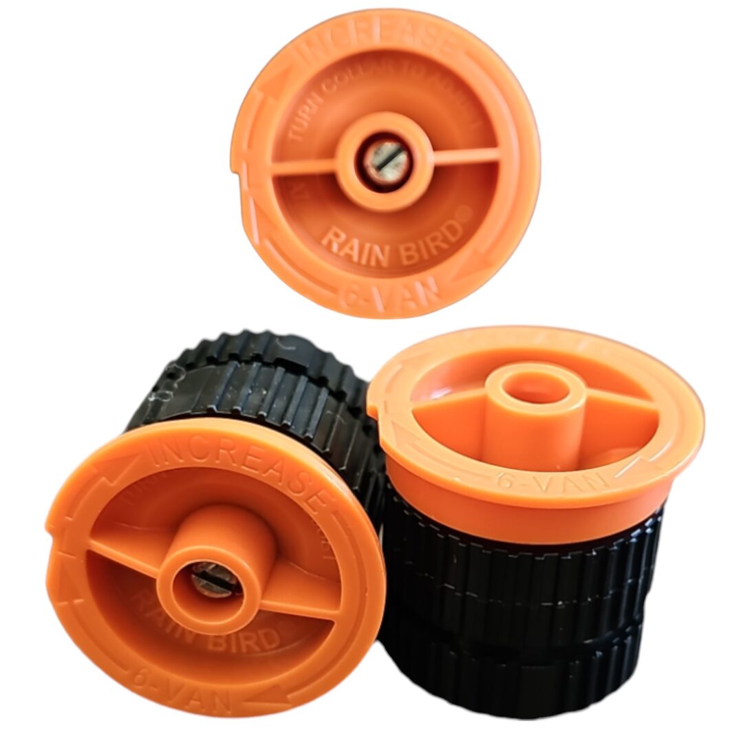 Dysza Rain Bird 6 VAN o zasięgu podlewania od 1,2 do 1,8 metra i regulacji kąta podlewania w zakresie 0-330 stopni.